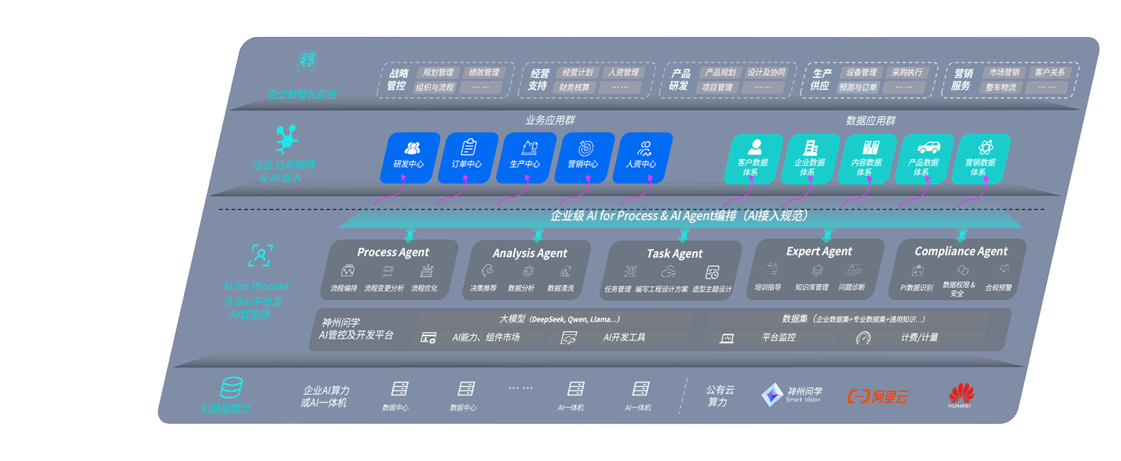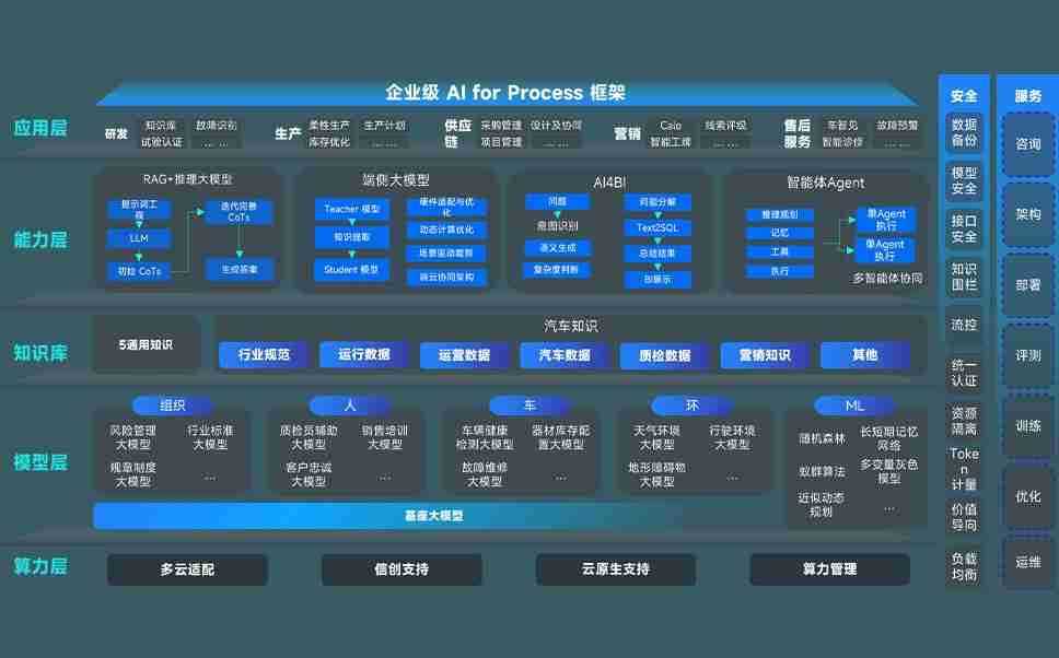端到端的一站式AI工作空间深度融合了从企业战略规划到日常经营的全流程业务板块,,定向解决车企内部领域多、、、、部门多、、、、链条长、、场景碎片化等难题,,支持车企快速构建以AI为核心的生产力写作体系,,,实现任务执行与AI能力的无缝集成与交互